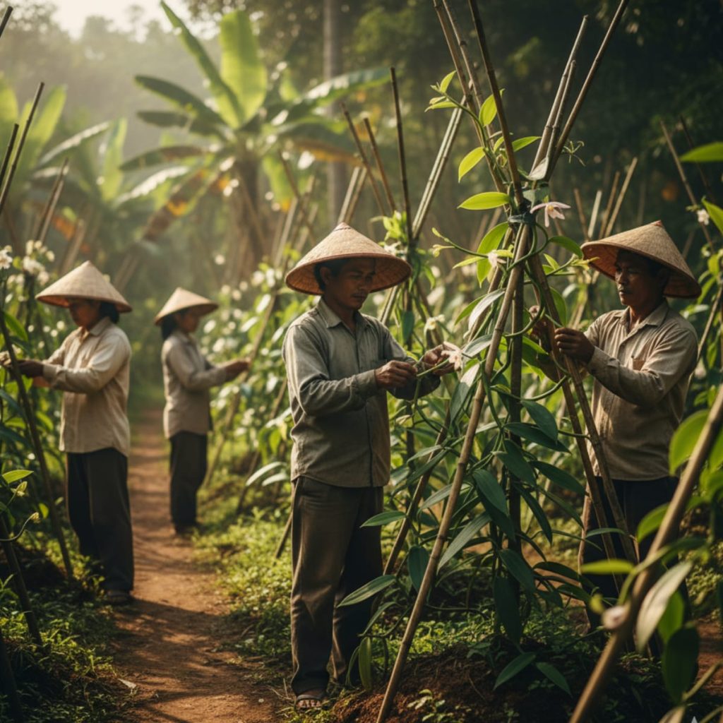 Our journey begins in the lush volcanic soils of Indonesia, where each vanilla bean grows under the tropical sun — nurtured by local farmers who value patience and authenticity.